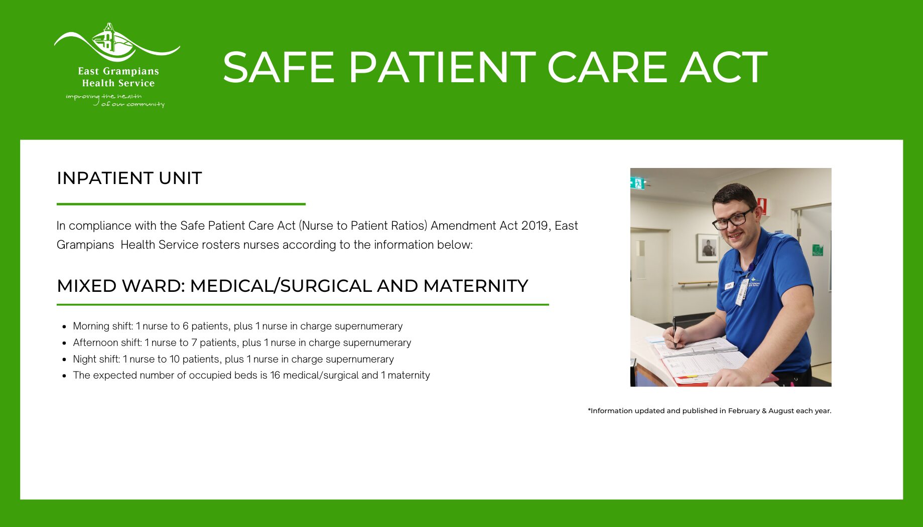 The Inpatient Unit continues to be very busy accommodating medical, surgical, paediatric, midwifery and palliative care patients.